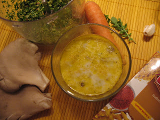 Krem čorba od bukovača sa kokosovim mlekom i rukola pestom